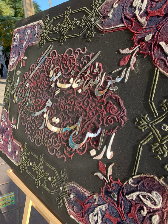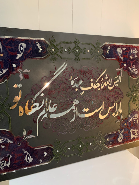 اکسسوری منزل تابلو نقش برجسته طرح کالیگرافی از جنس آینه و پودر مخمل